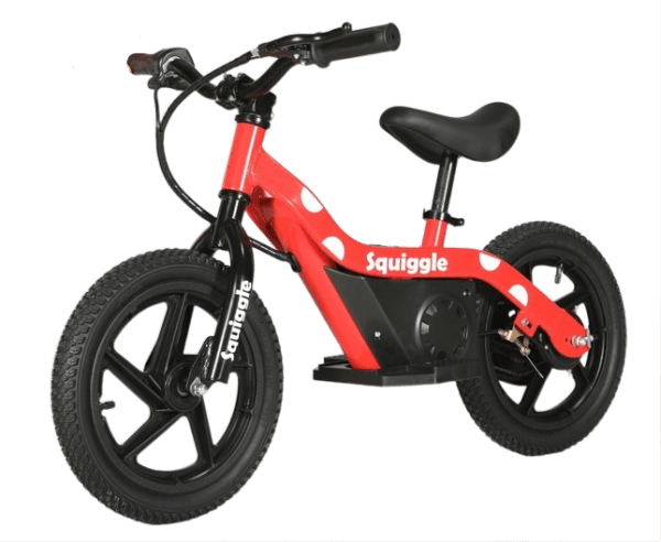 Here at Squiggle we have take balance bikes one step further and motorized them. Why? We find the majority of families enjoy walking along with their young ones while they are using their balance bikes, but find there is always a point where the little ones have had enough, leaving the parents to carry their standard bikes all the way home.